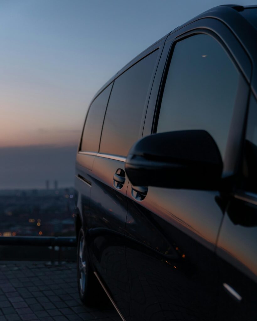 Ponctualité, confort et discrétion sont au cœur de notre service. Nous proposons également des trajets en van Mercedes Classe V, idéals pour les groupes, familles ou déplacements avec bagages, que ce soit pour un trajet privé ou professionnel.